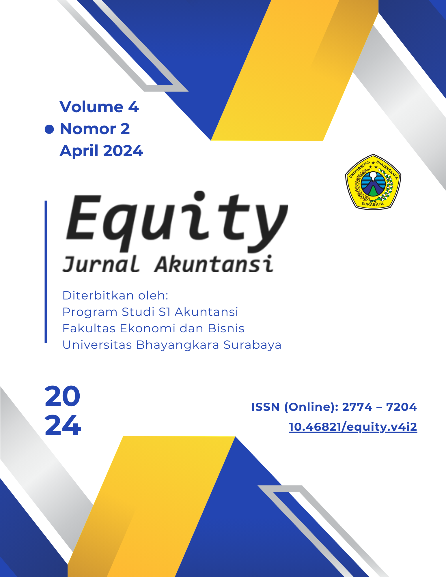Equity: Jurnal Akuntansi Volume 4 Issue 2 April 2024 has been available online since April 2020. All articles in this issue (8 original research articles) include Authors from Indonesia.